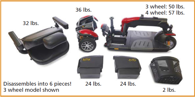 The Buzzaround LX (Luxury) is the latest addition to the Golden Buzzaround scooter line. This new scooter is one of the industries only "Full-Time" / "All Day" scooters, which is also fully portable for travel. The scooter offers a 375 lb. weight capacity, an "on demand" easy to operate, fully infinitely adjustable tiller, USB Charging port, and a large, plush highback seat. The scooter also comes standard with a full lighting package, and 33 AH batteries for all day use!